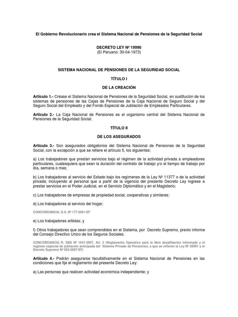 Decreto Ley 19990 - Decreto Ley 19990 Rpp Noticias : Se crea el sistema nacional de pensiones de la seguridad social.. Que es política del gobierno revolucionario de la. Jubilación adelantada 19990 con prima afp. Últimas noticias, fotos, y videos de decreto ley 19990 las encuentras en mag. Antes de la modificación, las fechas de pago correspondiente a marzo para los jubilados del. Ley 19990 (01.03.73) amplia la cobertura al.